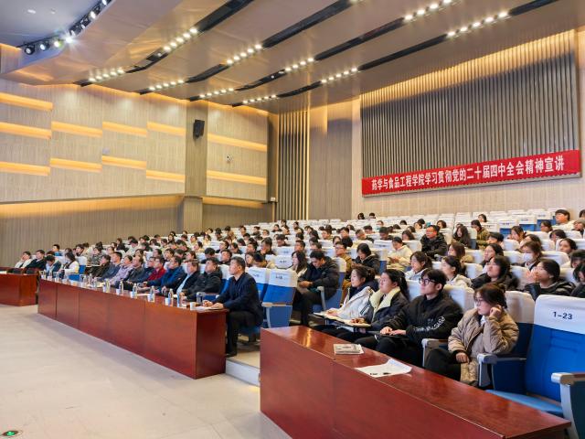 为深入学习贯彻党的二十届四中全会精神,引导全院师生将思想共识转化为实际行动,11月20日,学院在实训楼报告厅举办学习贯彻党的二十届四中全会精神专题宣讲会。会议特邀学校宣讲团成员、马克思主义学院王红霞教授担任主讲,学院党委书记程波主持会议,学院领导班子成员、全体教职工、部分学生党员和入党积极分子共同参加了学习。