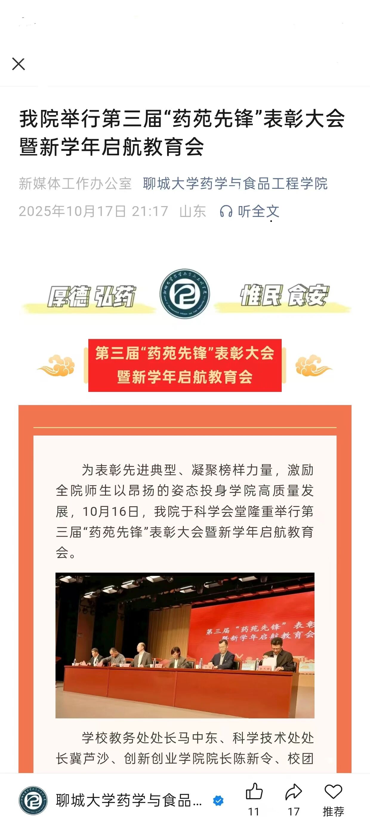 隆重举行表彰大会:每年举办高规格的“药苑先锋”颁奖典礼,邀请全体师生参加,通过宣读颁奖词、播放事迹短片、现场访谈等形式,增强仪式感与荣誉感。