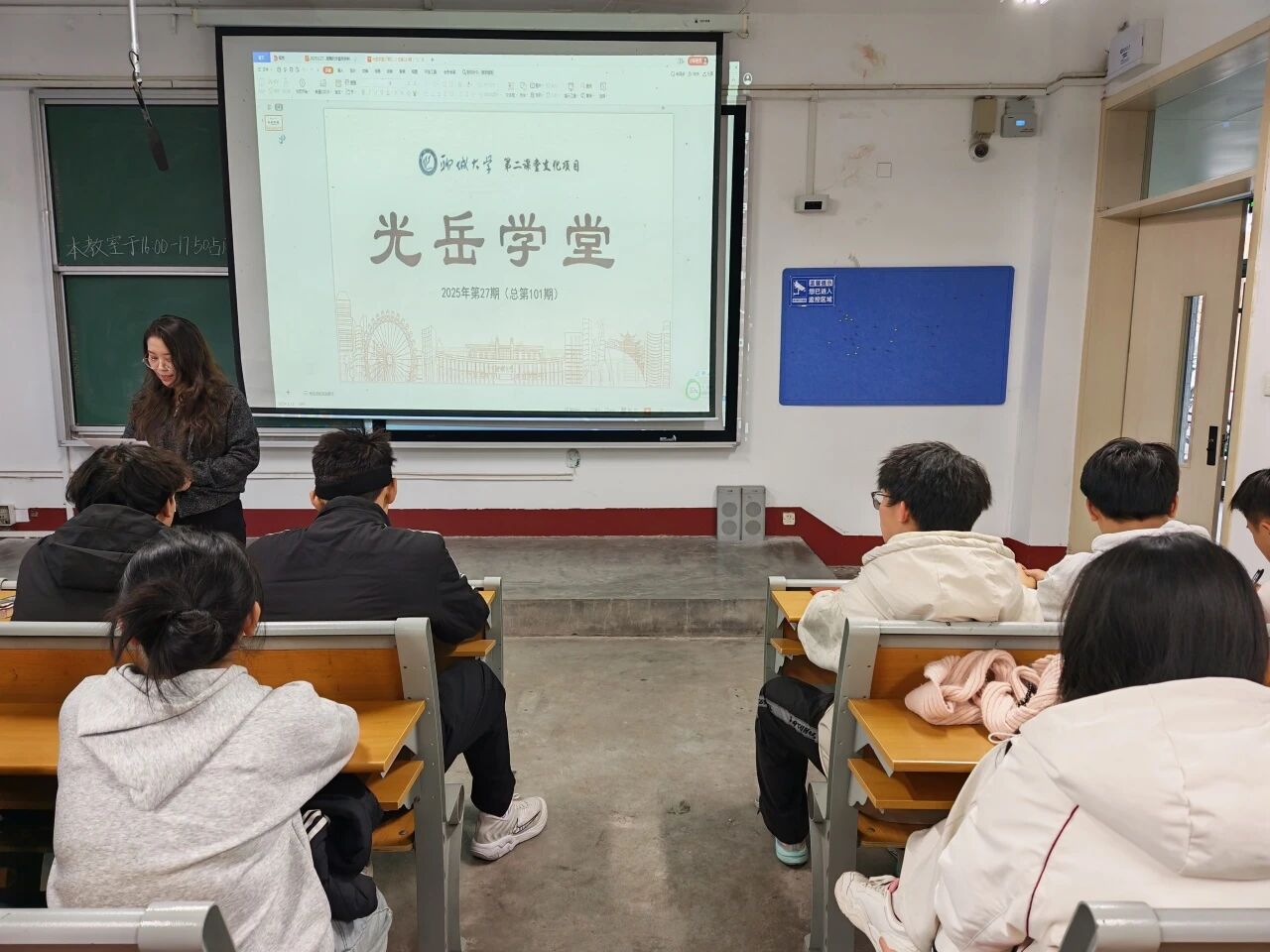 为帮助学生树立正确的科研认知,了解学术创新方法,11月27日,我院于2# 101举办2025年第27期(总第101期)光岳学堂,特邀学院科研秘书高卫担任主讲人,讲座由辅导员李丹阳主持。