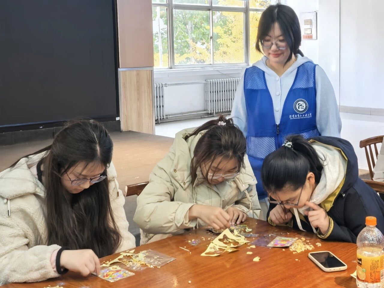 活动伊始,主讲人围绕粮食安全的战略意义展开阐述,从全球粮食格局到本土供应现状,细致地讲解了粮食安全对国家稳定、社会发展及个人生活的重要性,帮助学生打破“粮食充足便无需重视”的认知误区。粮食画绘制环节,学生手持五谷杂粮,在底图上充分发挥创意,将大麦、红豆、糙米等五谷杂粮化为创作元素,拼贴出各种图案,在动手过程中直观感受每一粒粮食的价值。随后,团队成员赠予每位学生一束系有寄语卡片的稻穗,让粮食安全的理念以更具仪式感的方式扎根学生心中。活动结束后,学生纷纷表示,此次活动让他们对粮食安全有了更具体的认知,对粮食安全的重要性有了更深刻的理解,要以实际行动争做粮食安全的践行者与传播者。