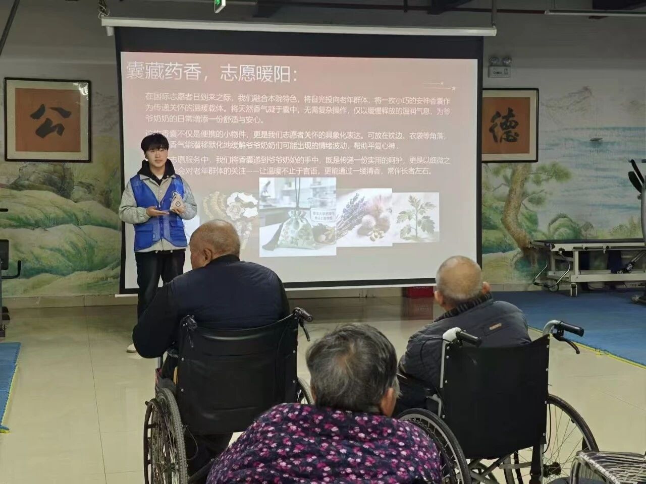 为弘扬“奉献、友爱、互助、进步”的志愿服务精神,提高老人们的中医药养生意识,12月4日,我院扶“药”直上,风华正茂志愿服务队于聊城市东昌府区慧德老年公寓举办以“囊藏药香,志愿暖阳”为主题的社会实践活动。