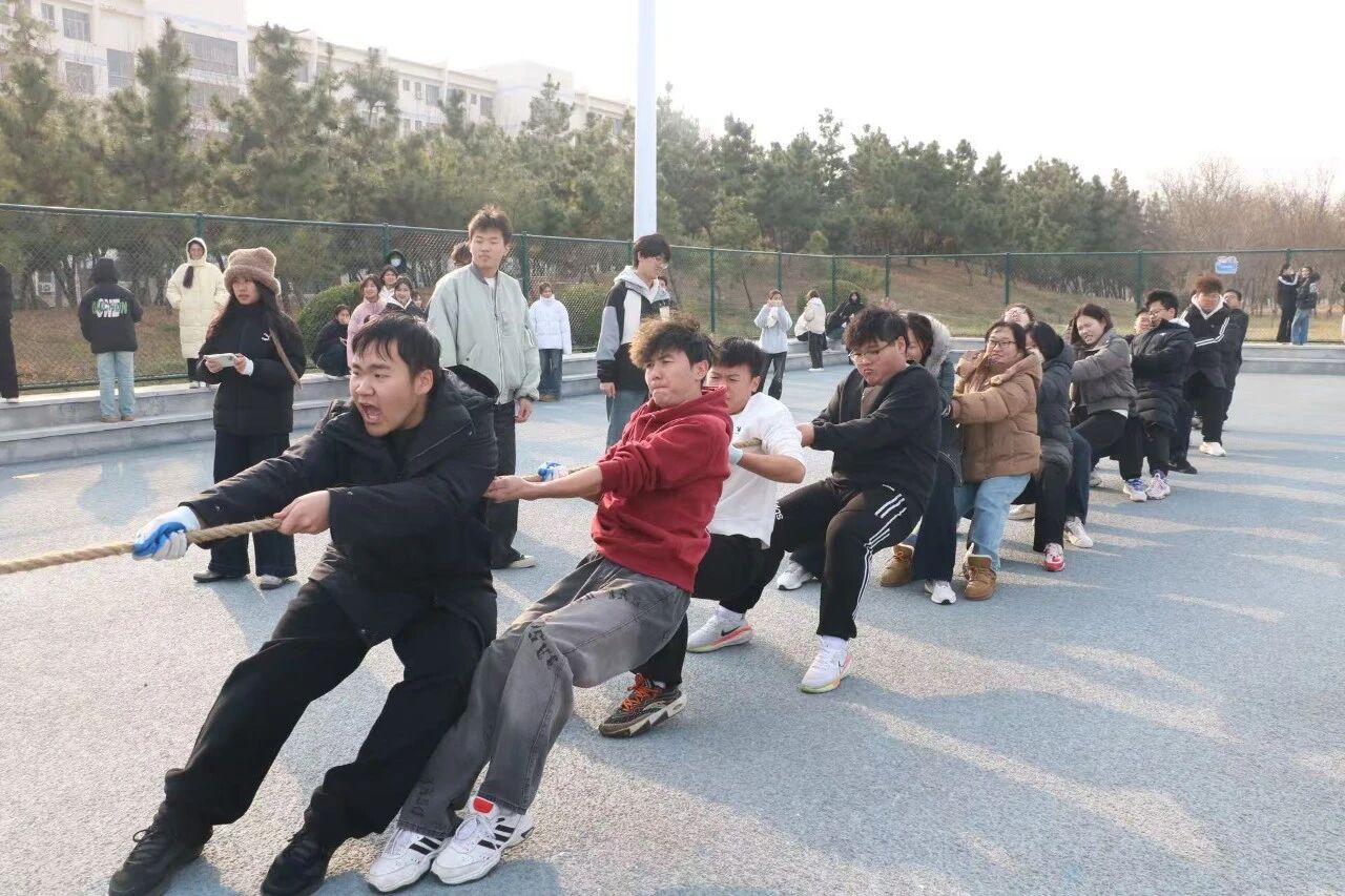 为深入推进阳光体育运动,提高学生身体素质,培育团队合作精神与集体凝聚力,12月11日,我院于田径场参加聊城大学第十一届“聚力杯”拔河比赛,我院2025级学生积极参与其中。