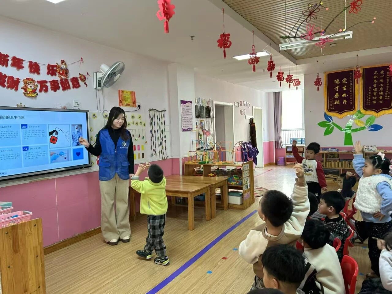 活动伊始,团队成员播放卫生科普动画短片,借助趣味情节向小朋友们讲解勤洗手、正确佩戴口罩、保持环境整洁等日常卫生行为的重要性,引导小朋友们理解卫生防护的意义。随后,团队成员为小朋友们示范“七步洗手法”,指导他们学习规范的洗手动作,让他们掌握洗手要点。交流互动环节,团队成员从病菌传播途径、病菌感染危害、感染应对措施三个方面展开讲解,并教给小朋友们日常遇到轻微感染正确处理的办法,小朋友们踊跃提问、积极发言,在轻松愉悦的氛围中巩固卫生防护技能。活动结束后,幼儿园负责人表示,本次活动既让小朋友们在互动中掌握了卫生防护技能,又帮助他们树立了科学的健康防护意识。