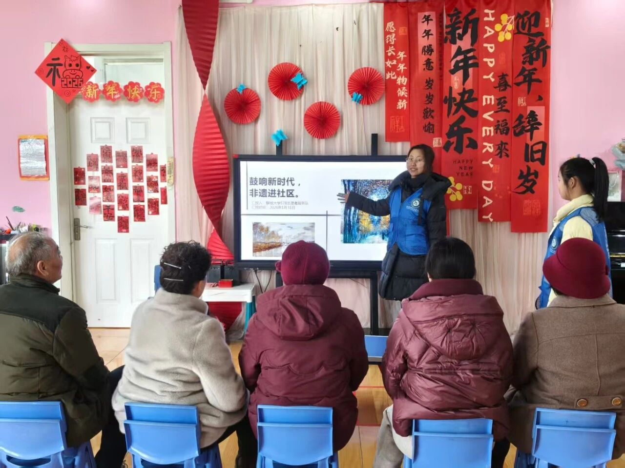 为弘扬优秀传统文化,丰富社区居民的精神文化生活,2月13日,我院578志愿者服务队于肥城市主城区特钢社区举办以"鼓响新时代,非遗进社区"为主题的社区实践活动。