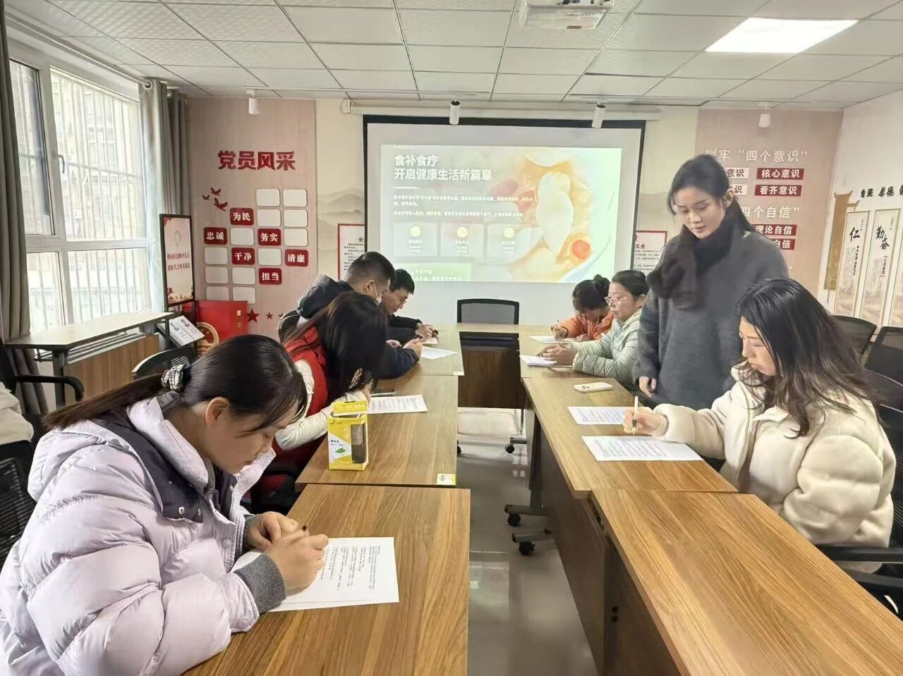活动伊始,团队成员结合古今食补食疗的典型案例展开讲解,生动介绍了红枣、枸杞、山药等常见食材的食疗功效,针对不同体质人群提出了对应的食补方案。团队成员遵循“因人而异、适度适量”的原则,指导居民搭配,避免盲目进补,并结合季节特点向居民推荐了适合日常搭配的简易食疗方案。讲解结束后,团队成员向参与居民发放专项调查问卷,并耐心协助大家完成填写。活动结束后,居民纷纷表示,此次活动为他们科普了丰富的健康搭配知识,让他们对寓养于食的健康理念有了更真切的体会。