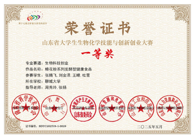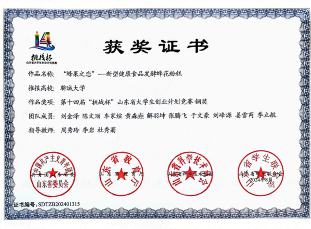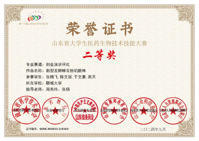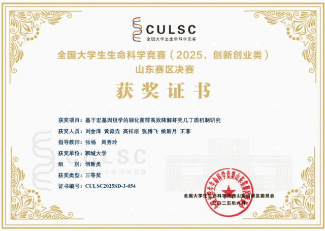 热烈祝贺药学与食品工程学院张腾飞荣获全国大学生生命科学竞赛(2025,创新创业类)山东赛区决赛三等奖