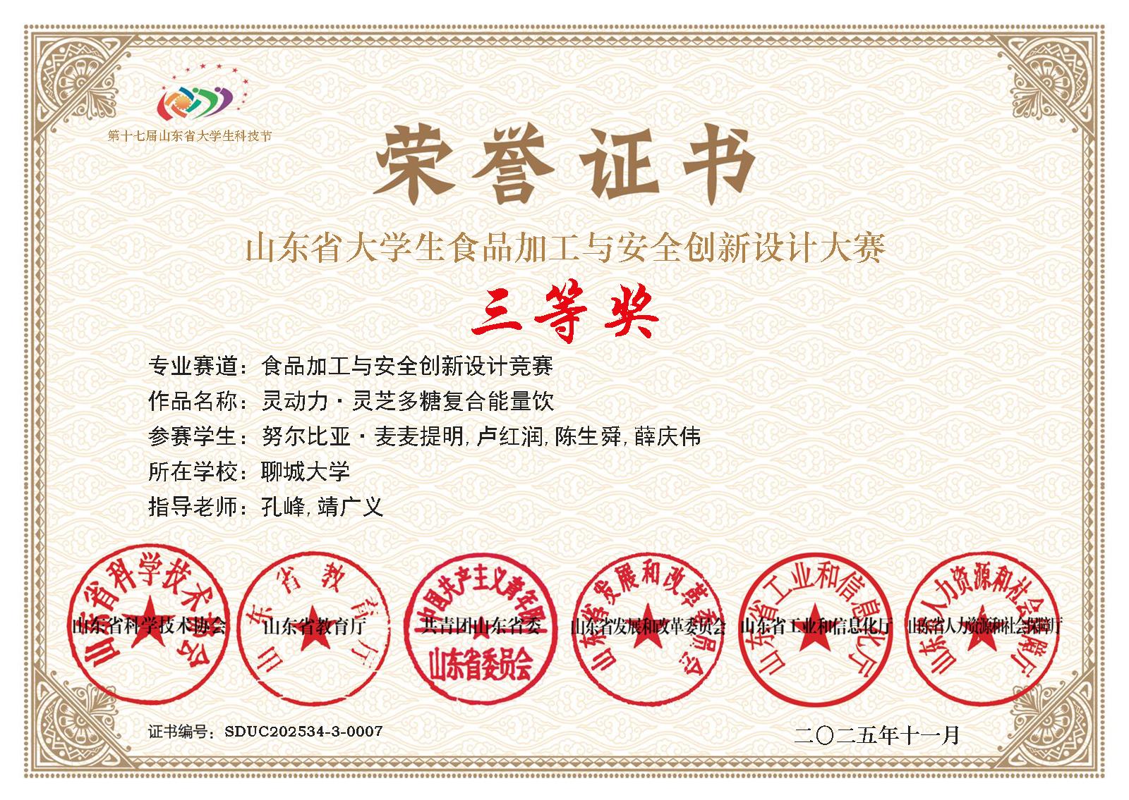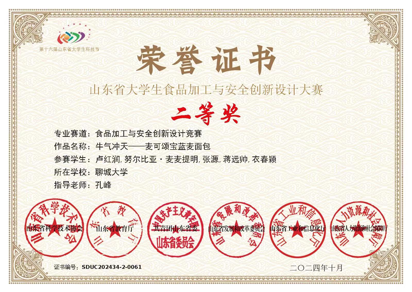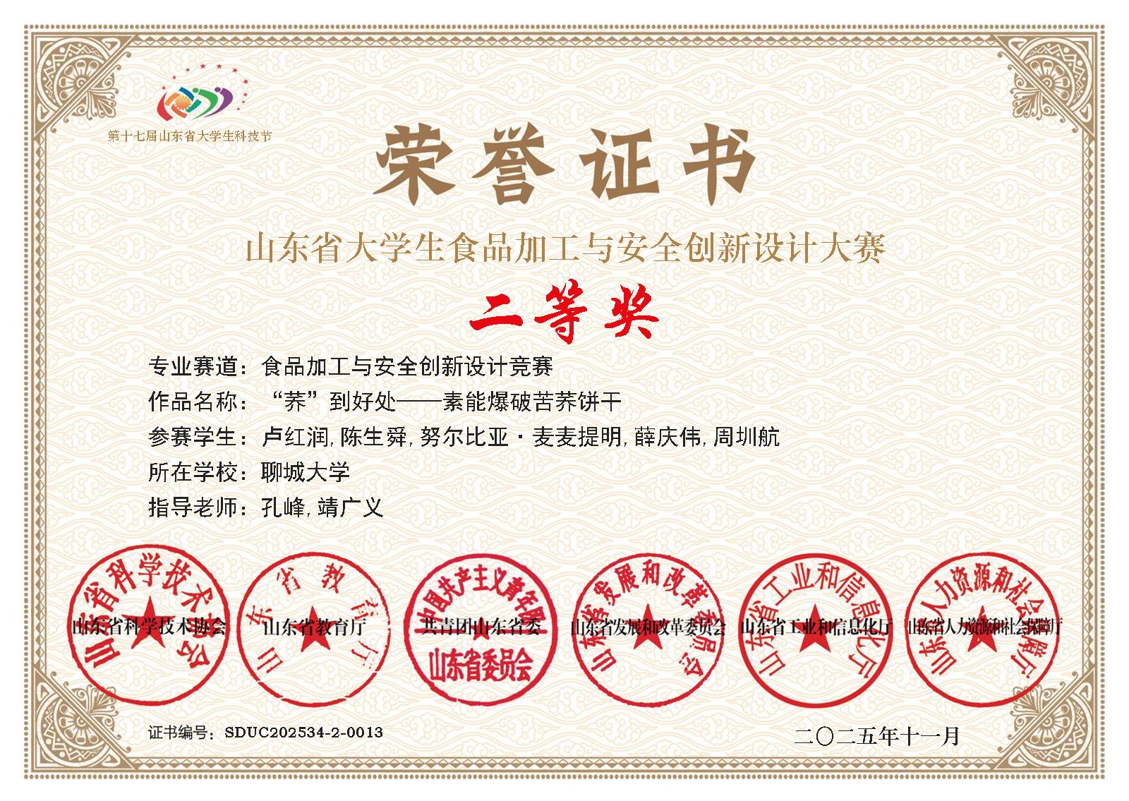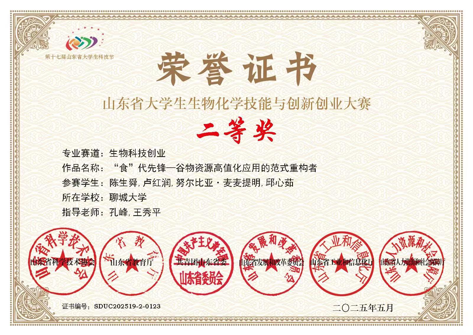 热烈祝贺药学与食品工程学院卢红润荣获全国大学生生命科学竞赛(2025,创新创业类)山东赛区决赛一等奖