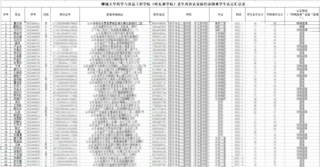 聊城大学药学与食品工程学院(哈瓦那学院)老生再次认家庭经济困难学生认定汇总表